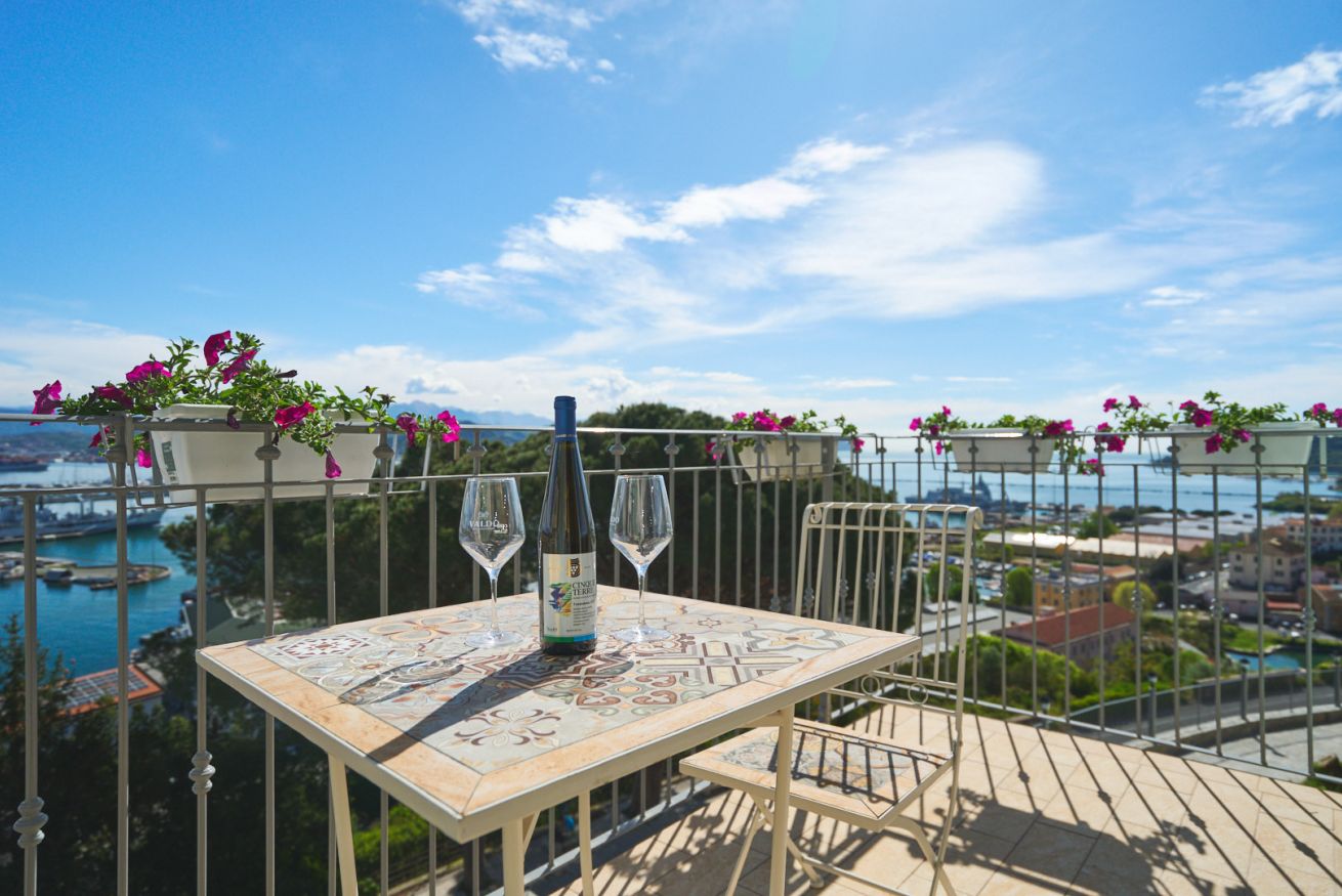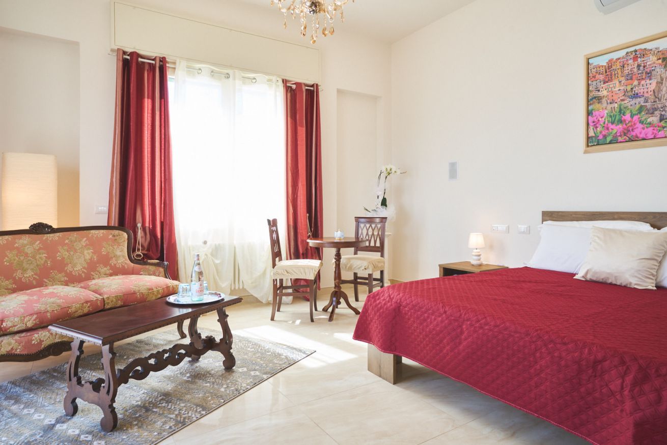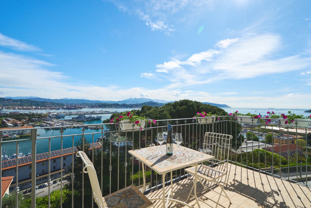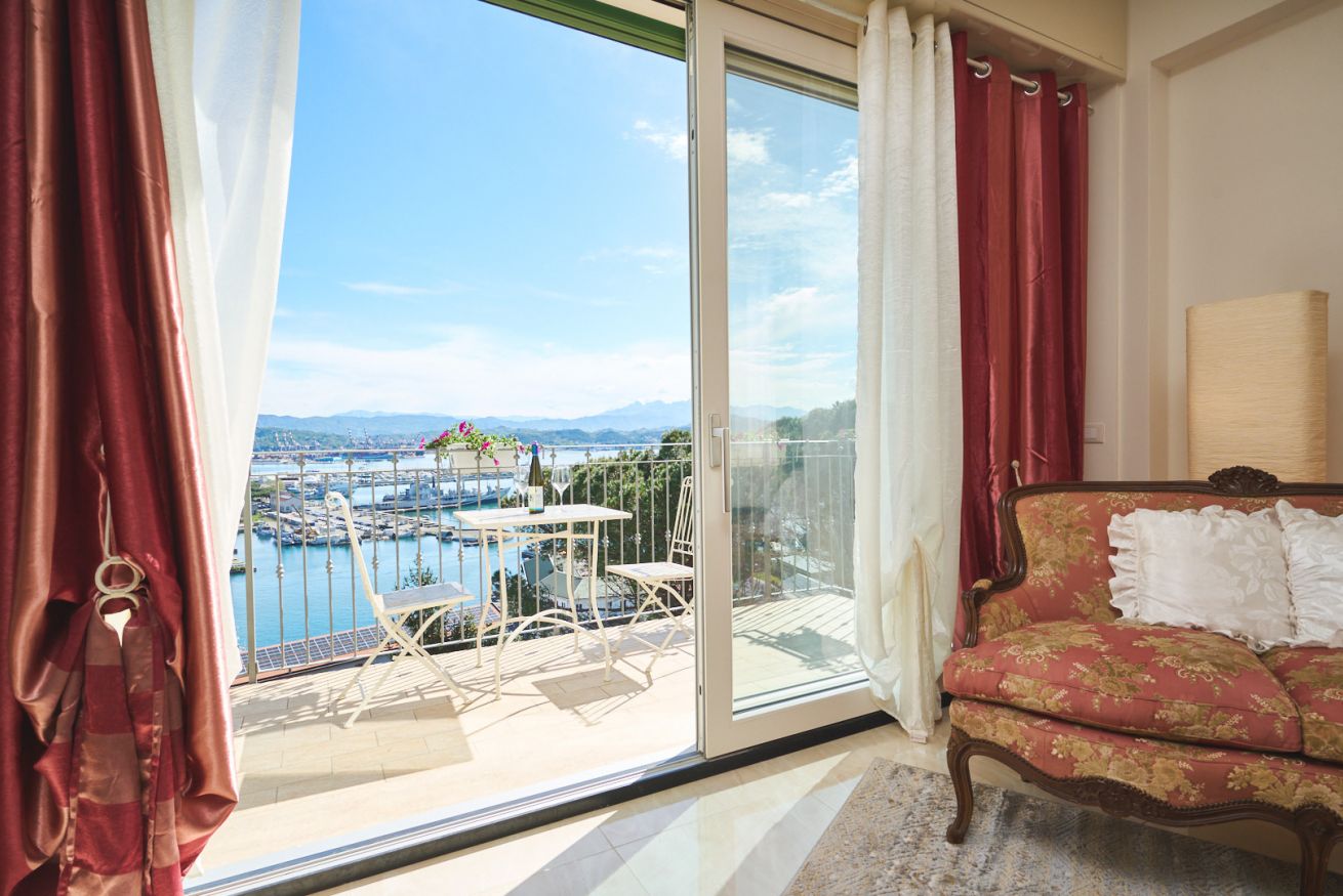 Questa è la nostra Suite Superior con una vista mozzafiato sull’intero Golfo dei Poeti. Dal suo terrazzo si gode di panorami sensazionali e da sogno, dall’alba al tramonto.